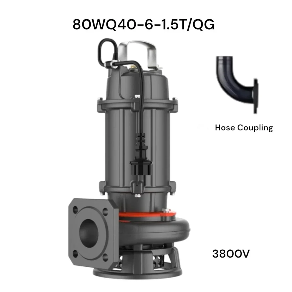 WQ : Pompe submersible pour eaux chargées classique, haute fiabilité, corps et turbine en fonte.