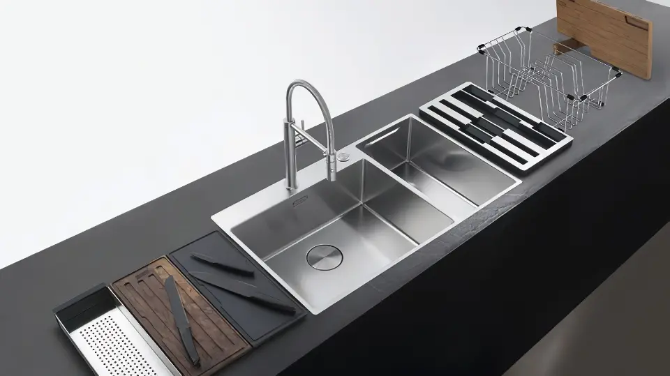 La marque FRANKE, référence haut de gamme suisse, propose des éviers en inox et en granite premium ainsi que des mitigeurs de cuisine innovants, conçus pour offrir performance, élégance et fiabilité absolue.