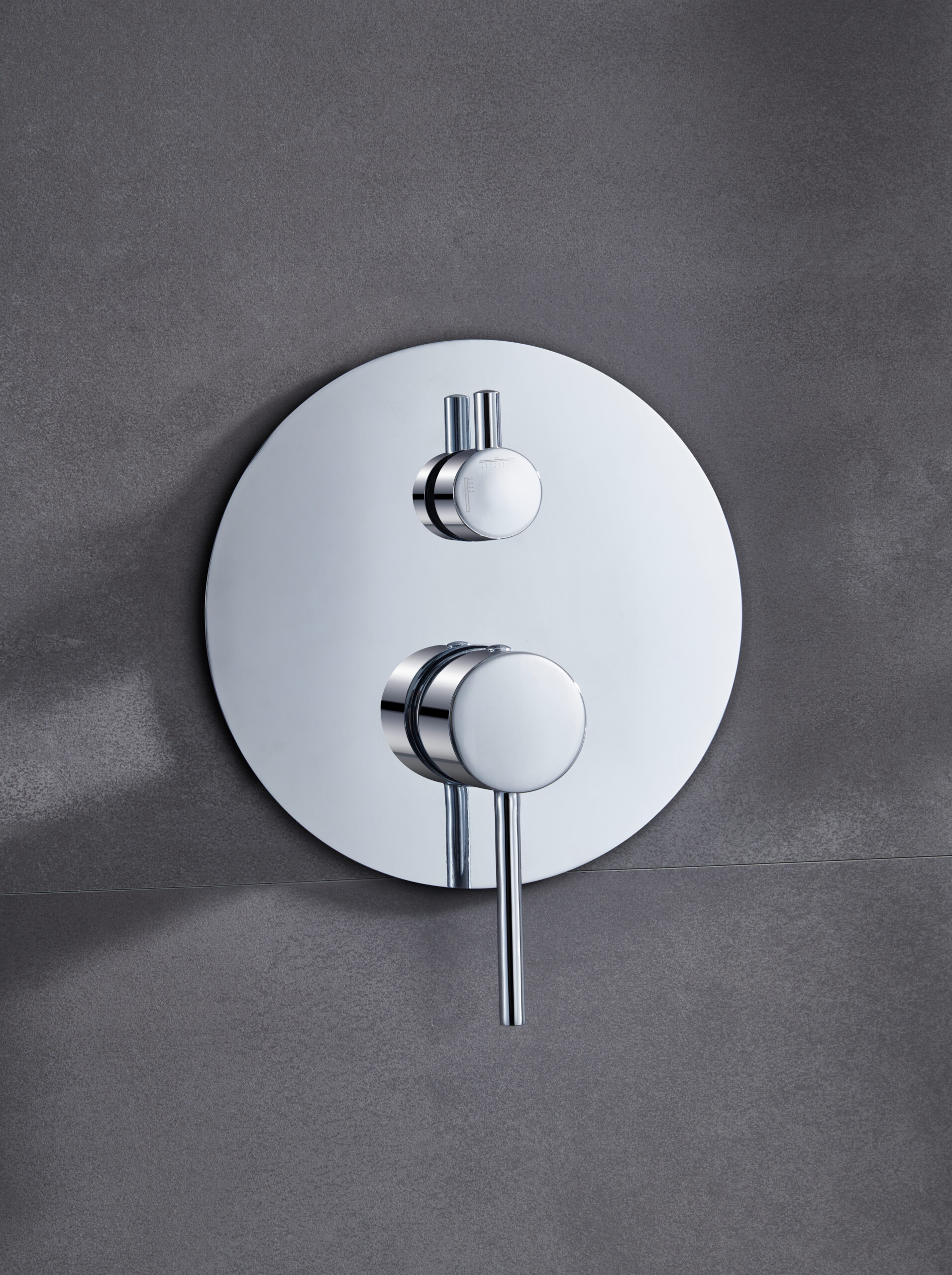 Robinet mitigeur monocommande en laiton chromé à deux voies.