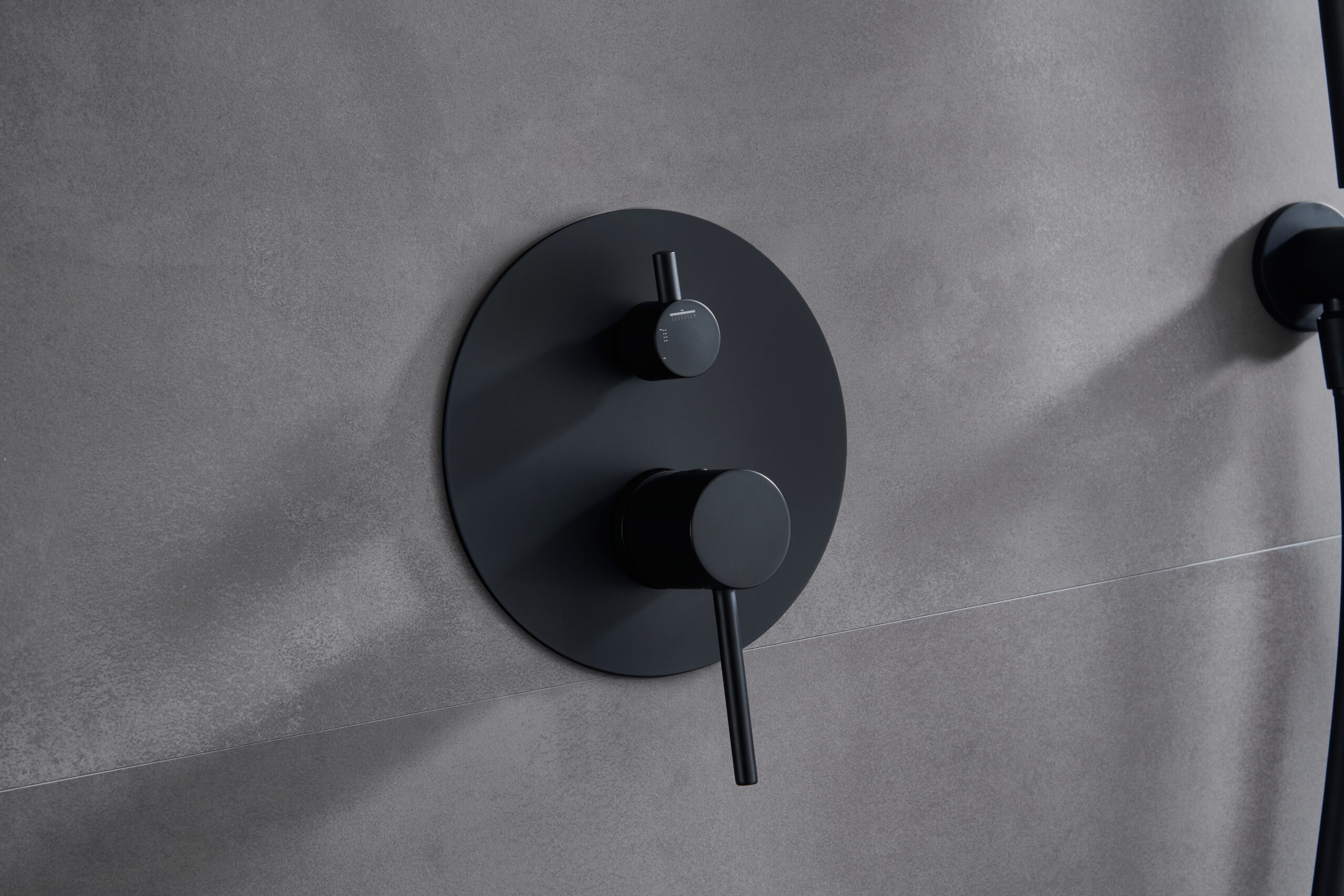 Robinet mitigeur monocommande à deux voies en laiton noir mat.