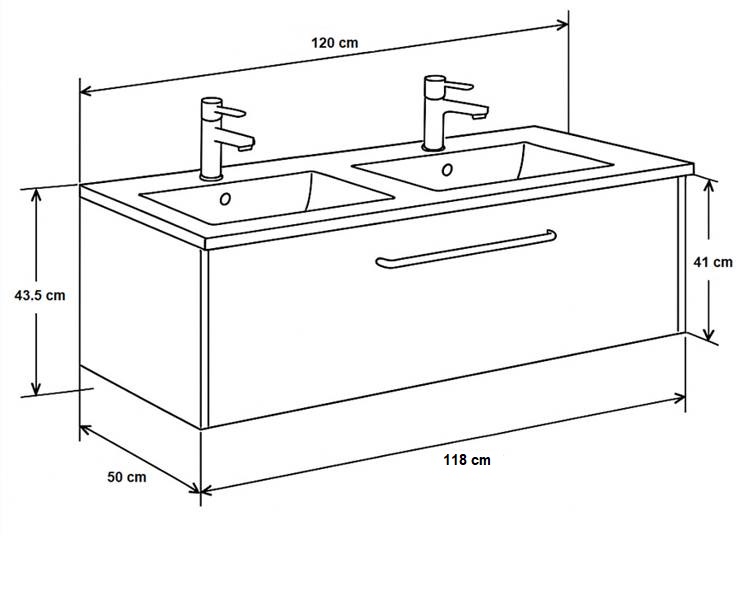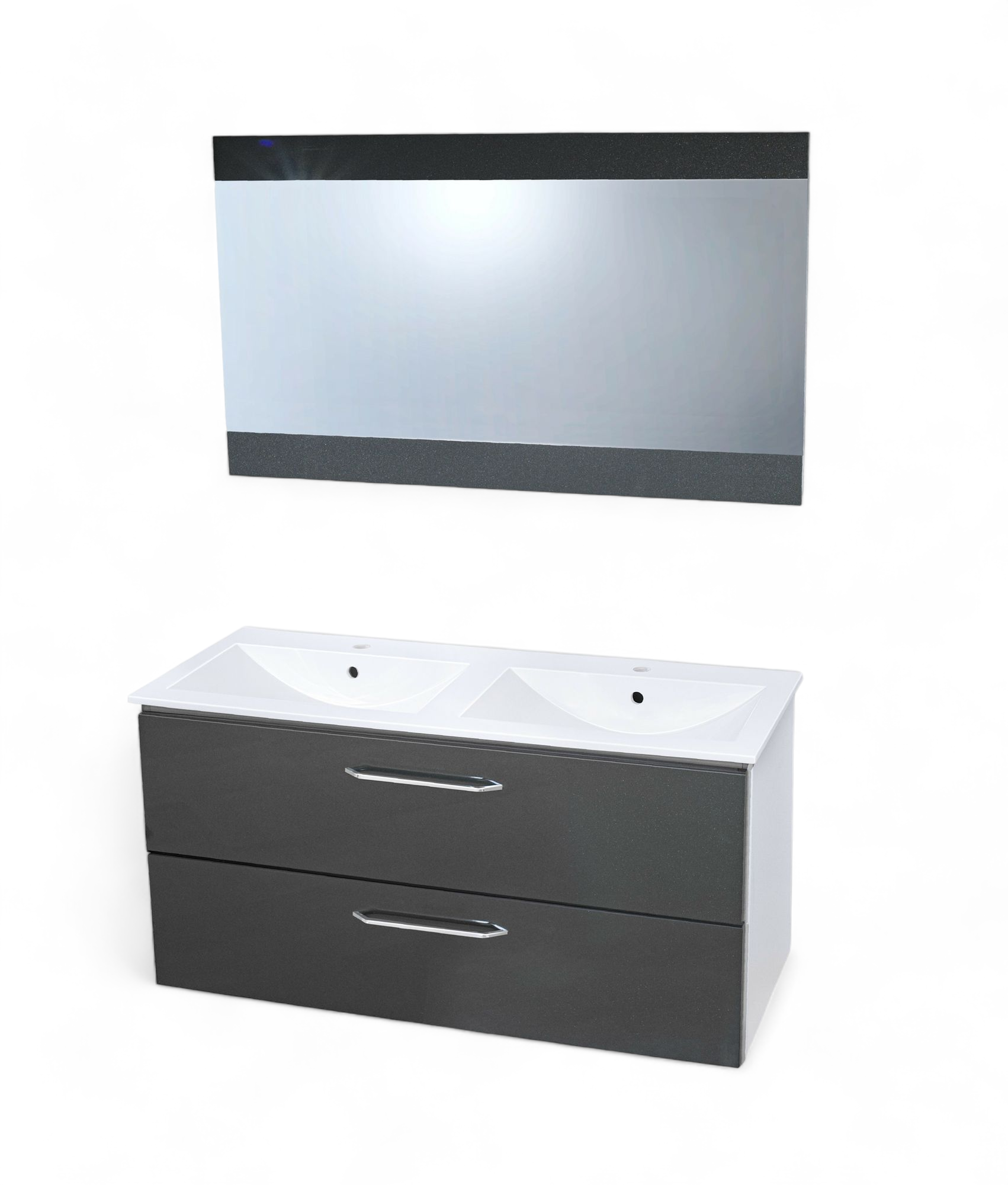 Meuble salle de bain double vasque et deux tiroirs pour plan-vasque Comete 120 cm avec miroir