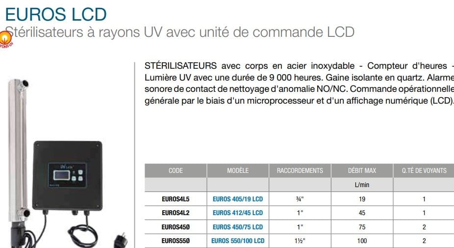 Les pompes doseuses, réacteurs ioniques et stérilisateurs UV EUROACQUE complètent la solution en garantissant un traitement précis, hygiénique et durable de l’eau.